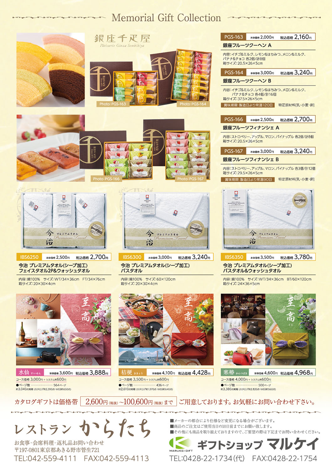 西多摩会館レストランからたちでは、引き出物のご注文をお受けしております。